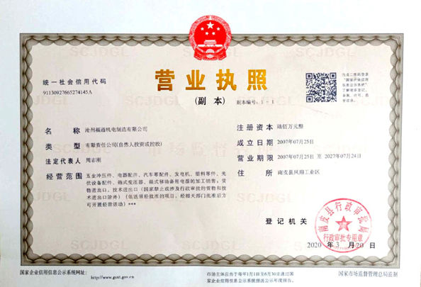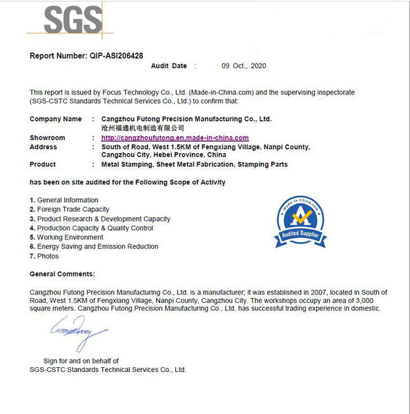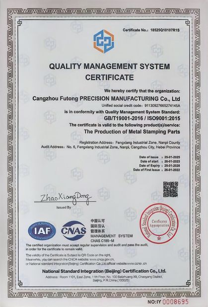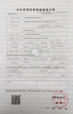 Cangzhou Futong Precision Manufacturing Co.,Ltd Certifications